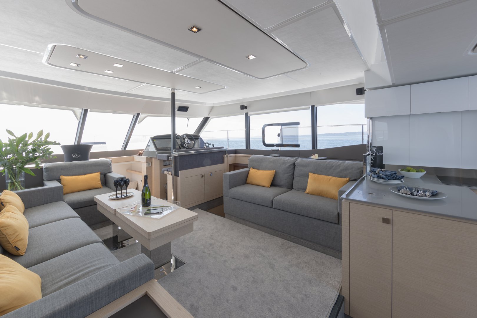 Die MY6 verfügt über eine beispiellose Menge an Wohnraum, einschließlich eines 20 m² großen Salons, einer 12 m² großen Flybridge und einer atemberaubenden 15 m² großen Mastersuite. Das Modell wurde im gesamten Katamaran mit eleganten Panoramafenstern ausgestattet, die eine spektakuläre 360-Grad-Aussicht und ein schönes Maß an natürlichen Lichtverhältnissen bietet.
